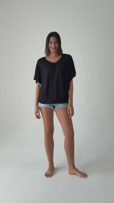 This elegantly soft modal top features a rounded neckline with layers of gathering that drape elegantly over your curves. This elegant nursing top allows for discreet breastfeeding with its innovative two-layer design. The bottom layer has an opening that allows for baby access, and the top layer conceals the bottom layer’s opening. You’d never guess it’s a nursing garment! Our clothes aren’t just for nursing. They make for stylish, elegant maternity clothes that will last you through nursing and beyond.
